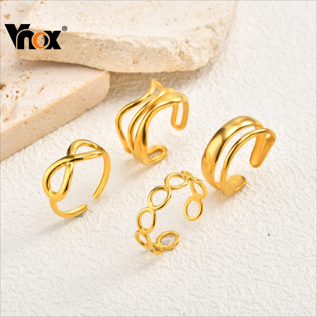 Anéis Abertos Geométricos De Aço Inoxidável Vnox Para Mulheres E Meninas , Anel De Dedo De Camada Dupla Cor Dourada Tend em Oferta na Shopee Shopee