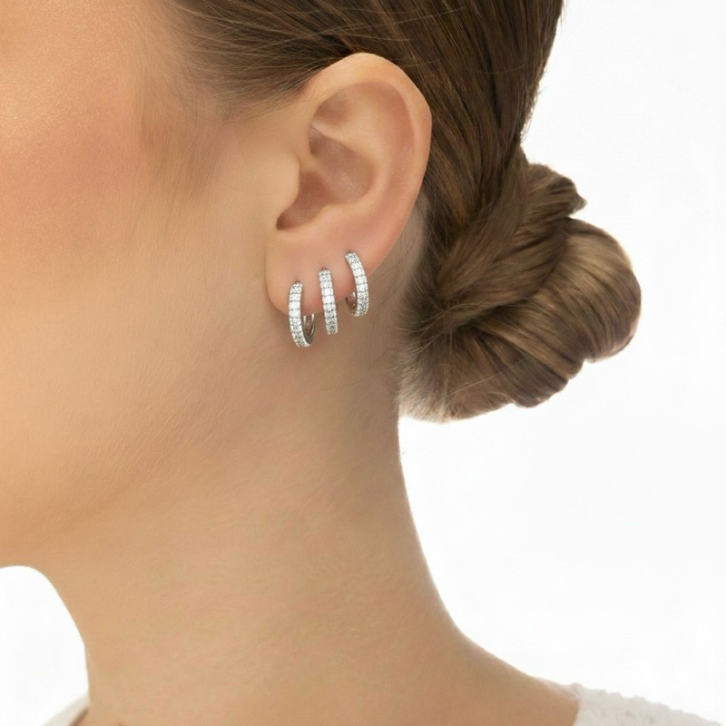 Brinco Trio Argola Prata 925 Click Redonda Cravejada - Mania De Madame Semijoias em Oferta na Shopee Shopee