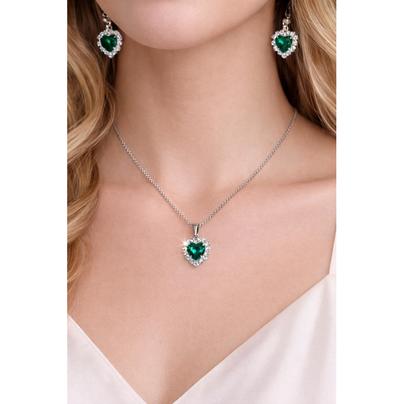 Conjunto colar e brinco pingente aço inoxidavel antialérgico coração cravejado em Oferta na Shopee Shopee