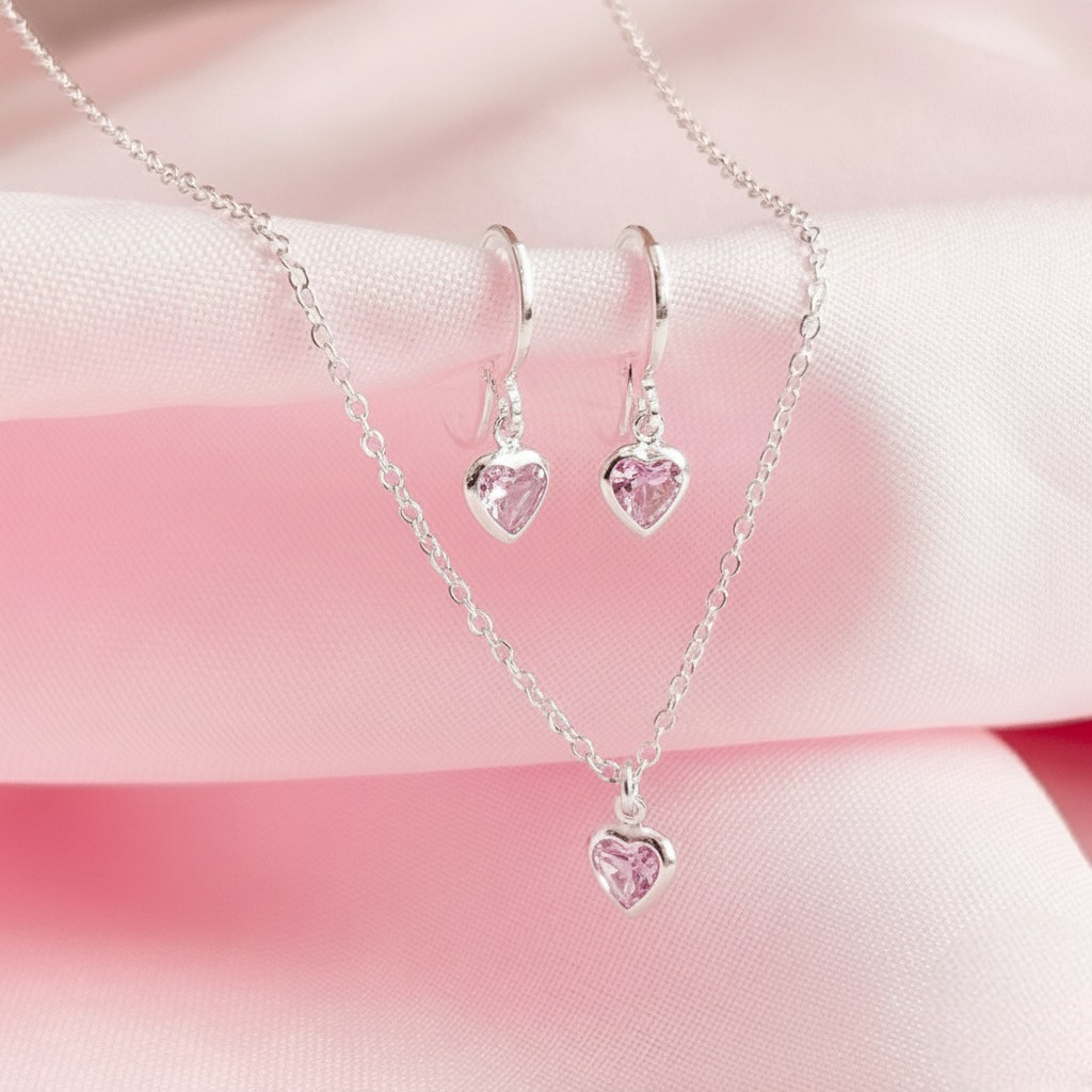 Conjunto de Colar com Brincos de Coração Rosa Banhados a Prata 925 em Oferta na Shopee Shopee