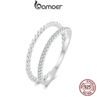 Bamoer 925 Sterling Sliver Ring Anel De Fita Dupla Camada Presentes De Moda Requintados Para Mulheres