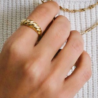 Anel Feminino Wave Ondas Cravejado Zircônias banhado em Prata 925 e Ouro 18k