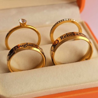 Par de aliança chanfrada banhada moeda antiga + Gravação Infinito + Solitário e Aparador COD-106