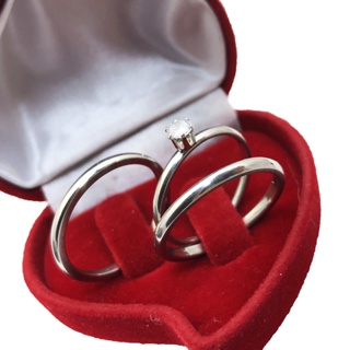 Par Aliança Namoro Compromisso Com Coração Diamantada Com Brilho 8mm em Aço Par de Anel de Compromisso + Anel Solitário