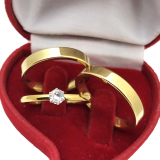 Par Alianças Casamento Noivado 3mm Chanfrada Lisa Polida Aço Inox Banhado Com Anel Solitário