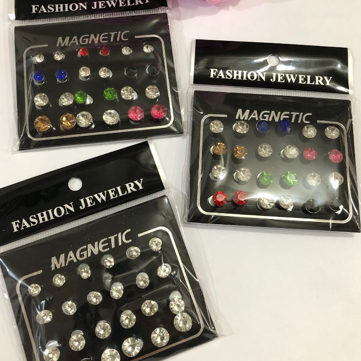 Kit 12 Pares Brincos de Pressão Magnético Zircônia Brilhante Masculino e Feminino/Vários tamanhos 3mm 4mm 5mm 6mm