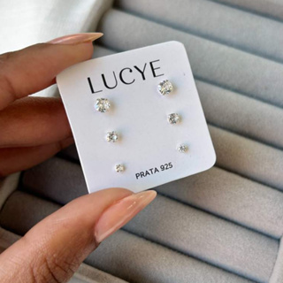 Kit de Brincos 3 furos Prata 925 Zircônia Redonda