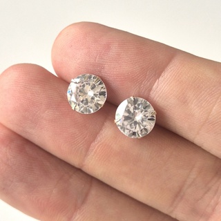 Brinco Ponto de Luz 8mm Prata 925 Legítima Zircônia Redondo Brilhante Masculino e Feminino