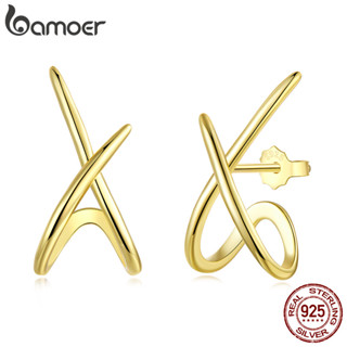 Brincos De Prata Esterlina 925 Bamoer Linha Dourada X Joias Presente Feminino