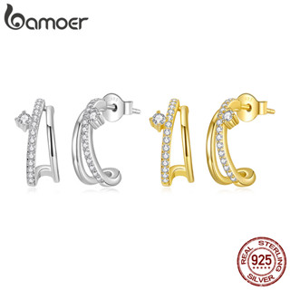 Bamoer 925 Original Prata Esterlina Moissanite Brincos De Duas Cores Divisão Dupla Camada Anti-Alergia Jóias Presente Fe