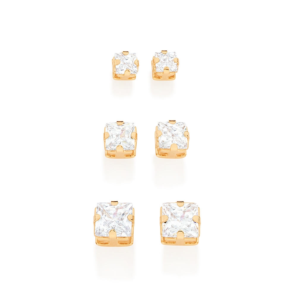 Kit Brincos Rommanel Solitários Banhados A Ouro 18k 3 Pares Com Zircônia 527039