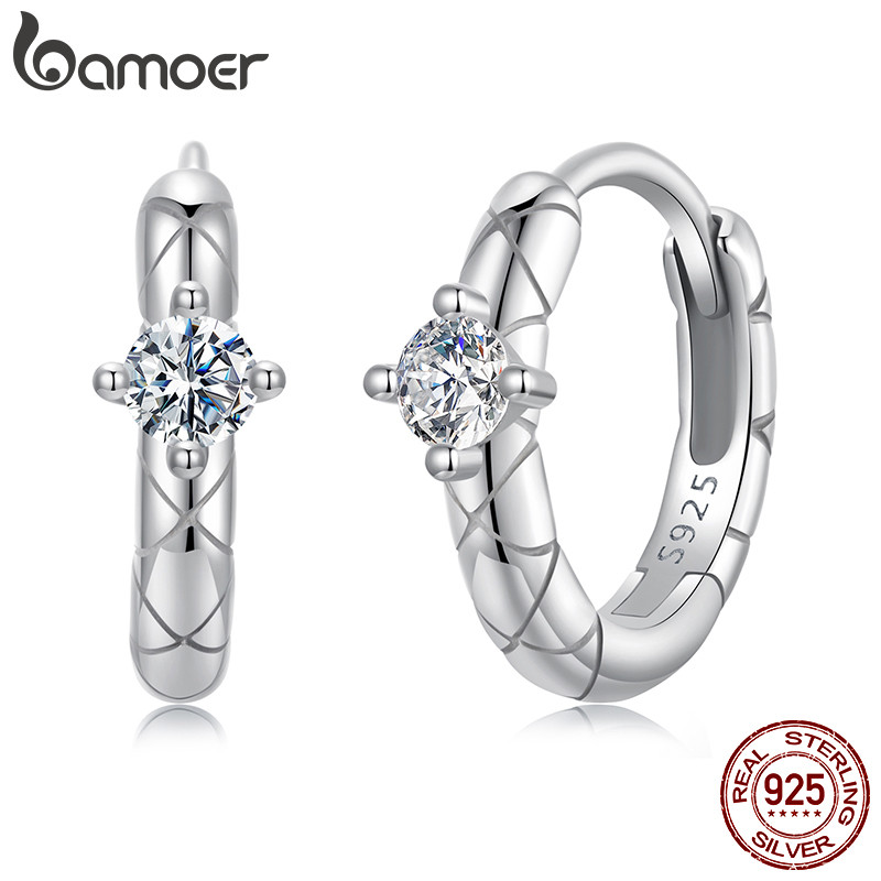 Brincos Bamoer 925 Prata Redonda Zircônio Diamante Joias Para Mulheres Acessórios De Moda