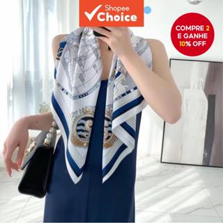 Lenço Feminino Encharpe Cetim Feminina Quadrado 90x90cm Estampado Elegante Cachecol Lenço Cabeça Bolsa Pescoço Fashion
