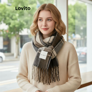 Lovito Lenço Feminino Casual Xadrez com Franjas para Outono/Inverno LNA32169