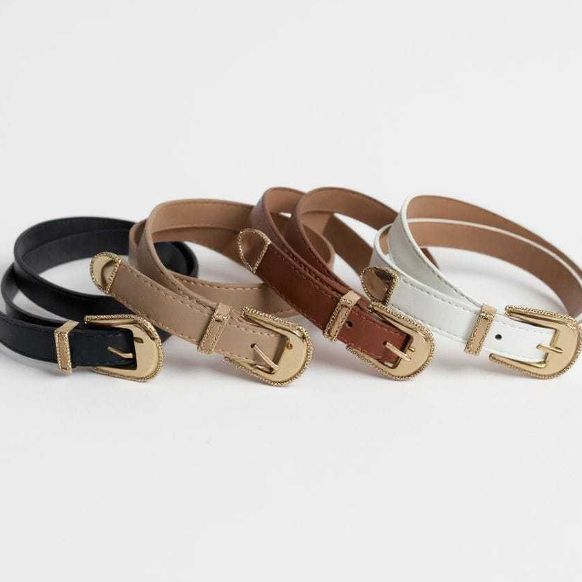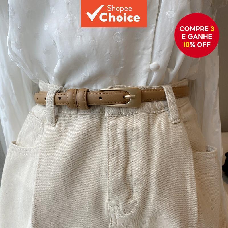 Cinto Feminino Fino Elegante Fivela Dourada Diversas Cores Ajustável Moda
