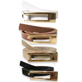 Kit 04 Cintos Feminino Couro Sintético Fivela Metalizada Dourada Minimalista