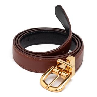 Cinto Feminino Casual Fino Fivela Banhada Giratória Em Couro Legítimo 2 em 1 Com Costura Elegante