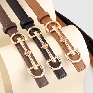 2025 Novo Cinto Feminino De Couro Genuíno De 2 Cm | Fecho De Pressão Com Fivela De Cavalo Para Jeans De Grão Superior (P