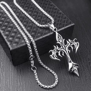 Colar Crucifixo Cruz Chama Punk Tribal Gótico Cristão Rock Alternativo Aço Inoxidável