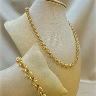 Colar moeda antiga elo português + Pulseira 45cm 5mm kit feminino