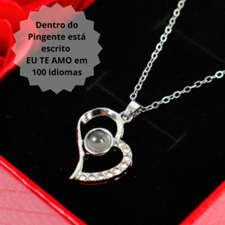 Colar Eu Te Amo Em 100 Idiomas E Porta Joias Dia das Mães e Namorados Pingente Presente
