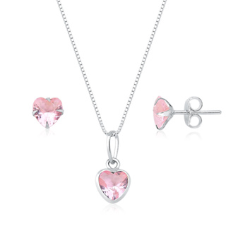 Conjunto prata 925 Brinco E Colar Zircônia Rosa Coração em Oferta na Shopee Shopee