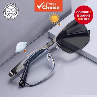 Óculos Quadrados Fotocromáticos Unissex Anti Radiação Armação De Metal Retrô