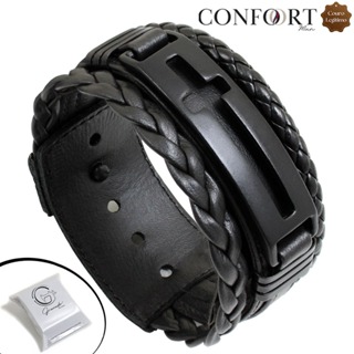 Pulseira de Couro Masculina Cruz Gratidão Proteção Resiliência - Vários Modelos em Oferta na Shopee Shopee