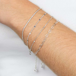 kit 4 pulseiras prata 925, cordão+veneziana com bolinhas + elo e detalhe coração em Oferta na Shopee Shopee