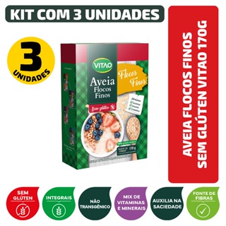 Kit Aveia Flocos Finos Sem Glúten Vitao 170G - 3 Unidades em Oferta na Shopee Shopee