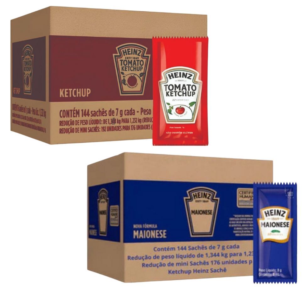 Kit Maionese e Ketchup Heinz 2 Caixas 288 Sachês 7g em Oferta na Shopee Shopee
