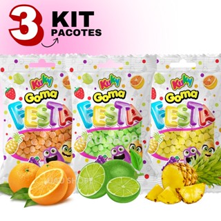 Kit 3 Bala De Goma Sino Limão Abacaxi Laranja Doce Kuky