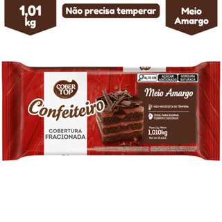 Cobertura Confeiteiro Sabor Chocolate Meio Amargo Barra 1,01kg Cobertop Profissional Raspas Cortes