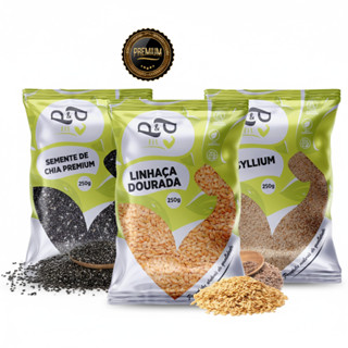 Kit Mix de Sementes Chia + Linhaça + Psyllium Fibras Low Carb Total 750g