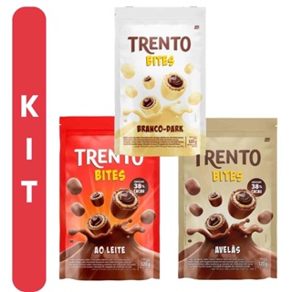 Kit Trento Bites Avelã + Trento Bites Branco Dark + Trento Bites ao Leite 120g cada