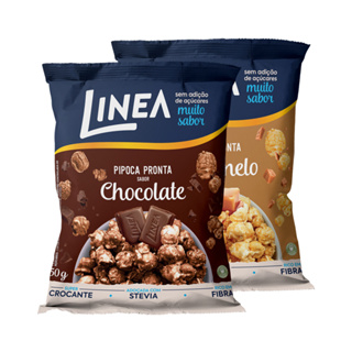 Kit 2 Pipocas Pronta Linea Sabor Chocolate e Caramelo 50g