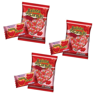 Kit Balinha do Coração 3 Pacotes 500G cada -Bala dura sabor morango Florestal Brinde Festa Guloseima