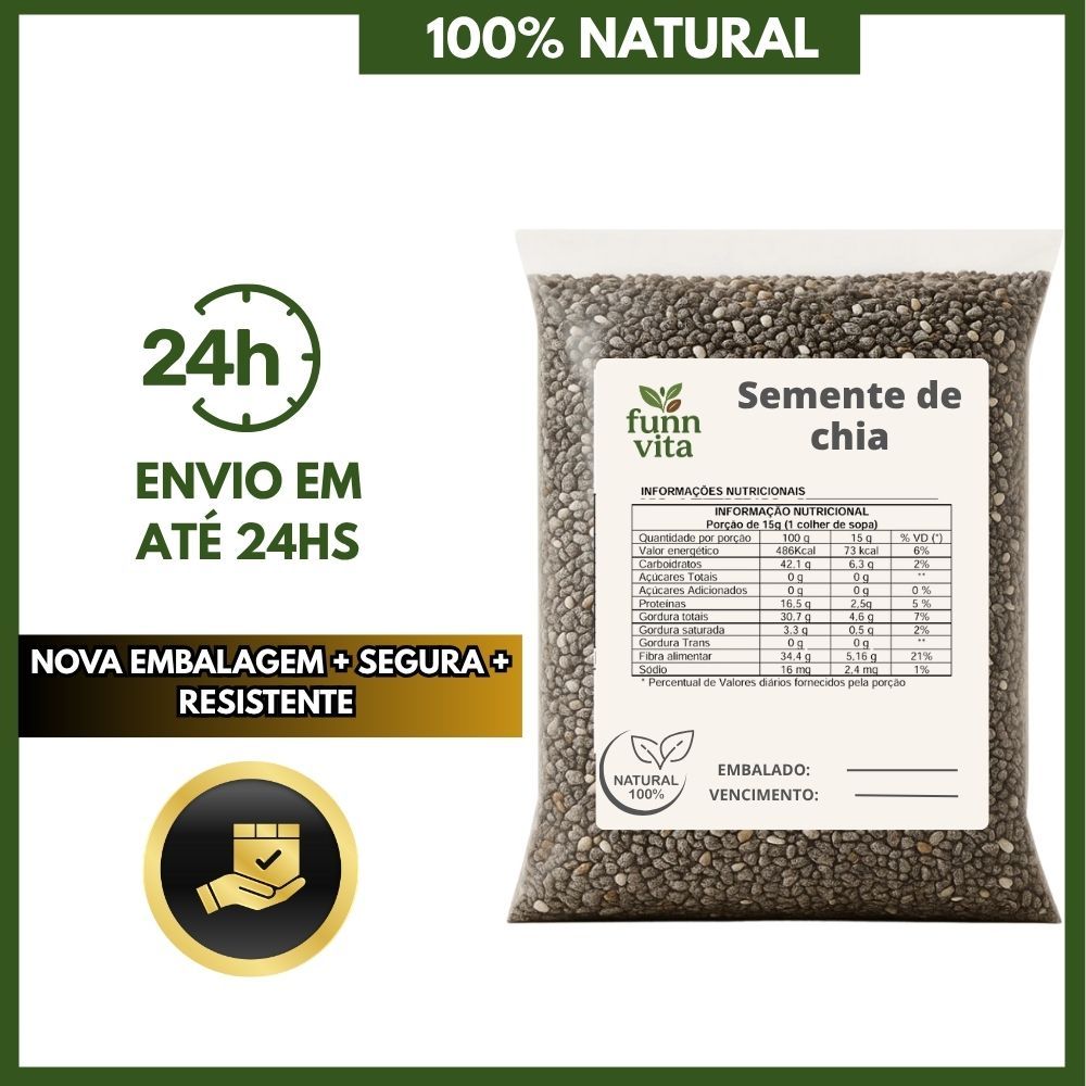 Semente de Chia Natural Embalagem Premium Zip Lock (250g, 500g, 1Kg e 2Kg) - Da Vida