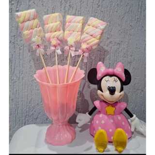 KIT 15 Marshmallow no palito colorido com flor, lembrancinha de festa, decoração festa