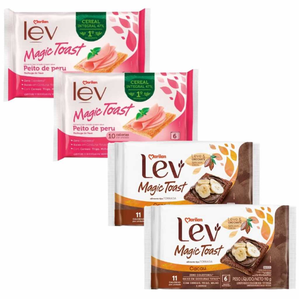 Magic Toast Lev Cacau Integral Light Peito de Peru Kit com 4