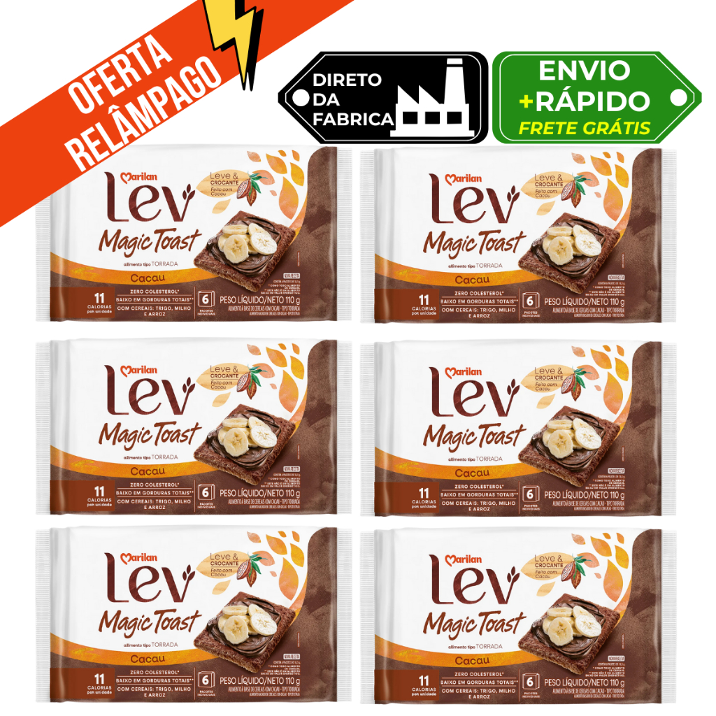 Kit 6 Torrada Lev Magic Toast Cacau 110g Marilan Original