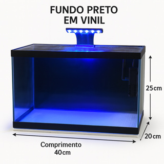 Aquário 20 Litros Vidro 3mm com Vinil Preto 40x20x25cm Ideal para Peixes