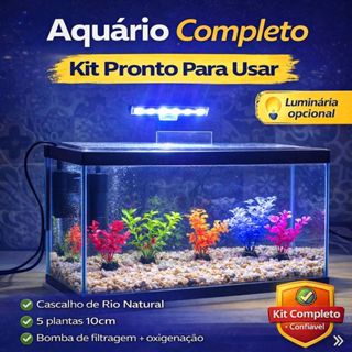 Aquário Completo 40x20x25cm com Bomba e Decoração | Pronto para Usar