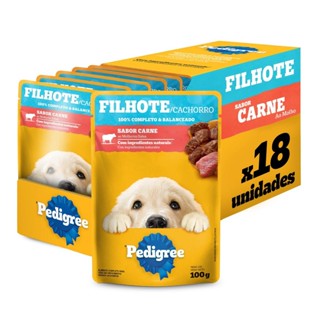 Kit 18un Ração Úmida Pedigree Sachê Carne Cães Filhotes 100G