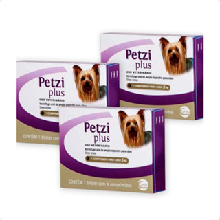Kit 3 Petzi Plus 350mg Vermífugo Ceva para Cães 5Kg - 4 comprimidos
