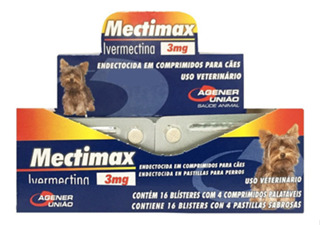 Kit 4 Mectimax Ivermectina Agener União 3 mg para Cães - 4 Comprimidos