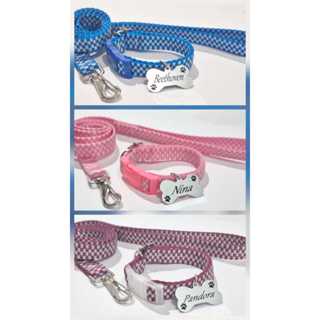 Coleira para Cães e Gatos com Guia e Placa de Identificação Gravada!!! INFORME O NOME DO PET  E TEL DO DONO POR MENSAGEM em Oferta na Shopee Shopee