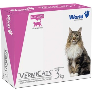 Vermífugo World Veterinária VermiCats para Gatos de 3 Kg - 4 Comprimidos envio 24hrs em Oferta na Shopee Shopee