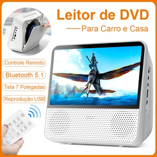 Leitor De DVD Multimídia Portátil CD Player com Bluetooth 5.1, Tela 7" Tela HD 1024x600, Entrada USB, AUX, AV