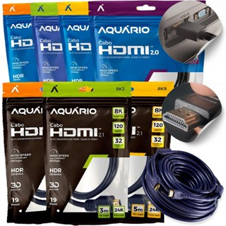 Cabo HDMI 2.0 4K E 2.1 8K Aquário Gold Blindado 2m 5m 10m Alta Velocidade